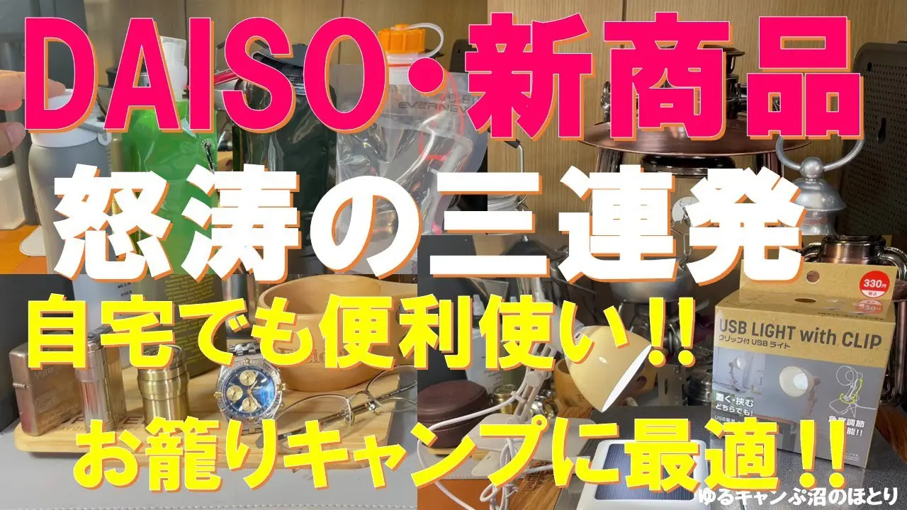 | タイトル | 【緊急速報‼】百均DAISO‼怒涛の新商品三連発‼自宅でもキャンプでも使える便利グッズ&ソロキャンプに最適ギアなど‼ |