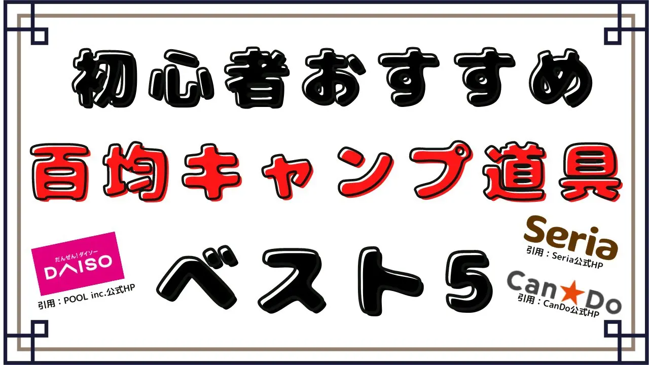 | タイトル | 【100均キャンプ道具】初心者おすすめ百均キャンプギアベスト5 |