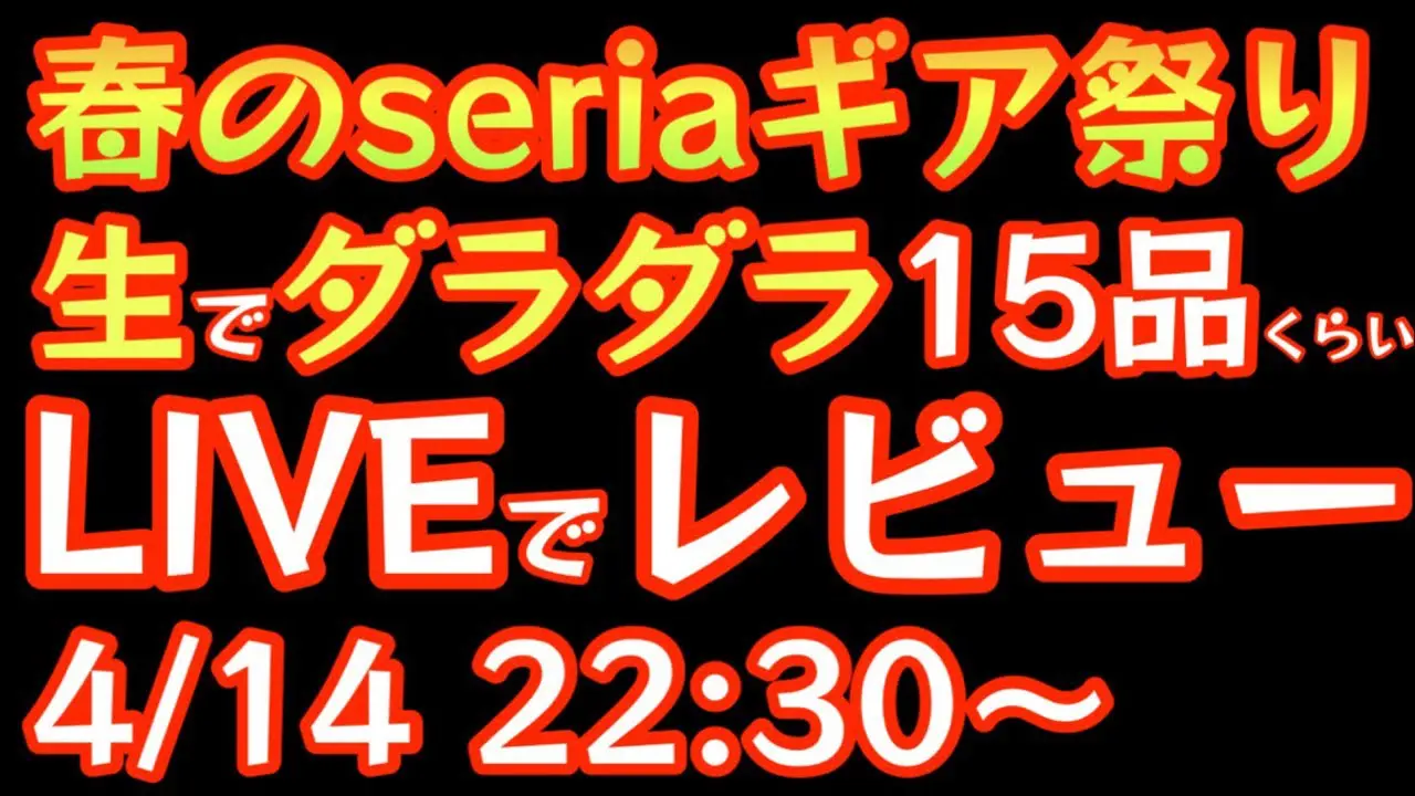 | タイトル | 【LIVEでギアレビュー】春のSeriaギア祭り 15品くらいを生でダラダラ レビューします! #100均アウトドア |