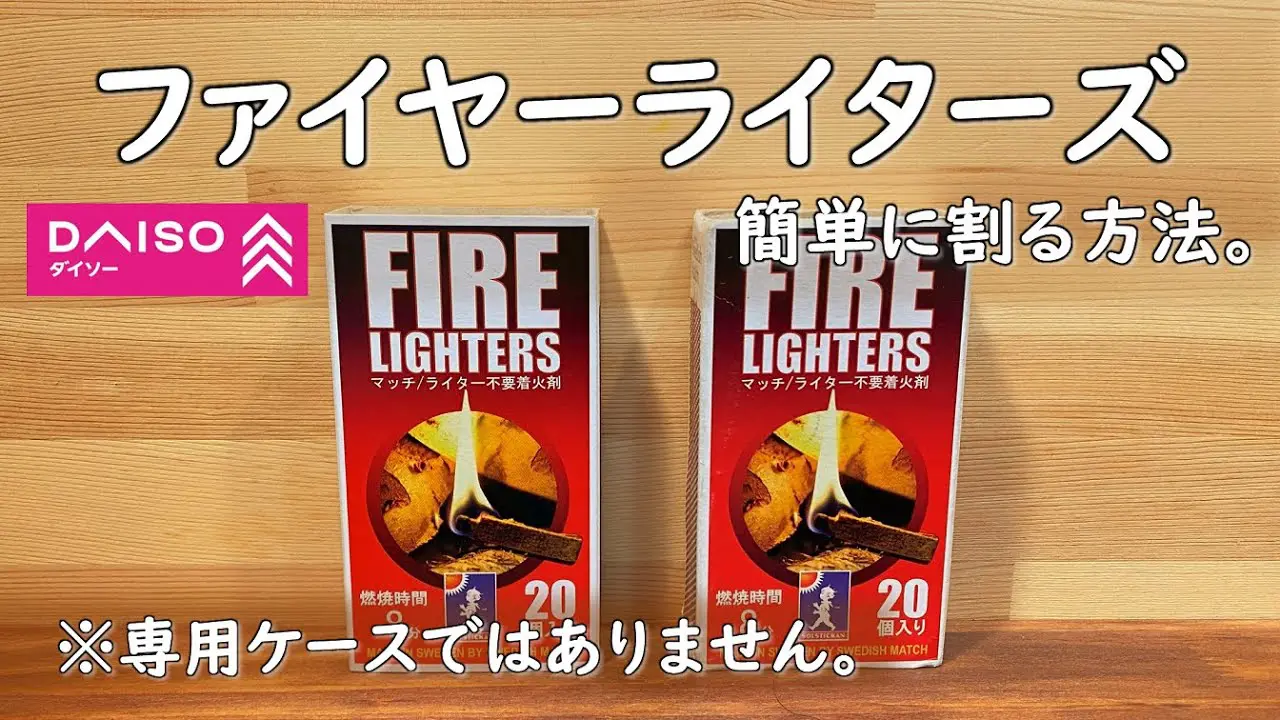 | タイトル | 【FIRE LIGHTERS】ファイヤーライターズの割り方。100均ダイソー商品を使って簡単に割れます。※専用ケースではありません。キャンプ 道具 焚き火 火起こし 着火 折り方 方法 camping |