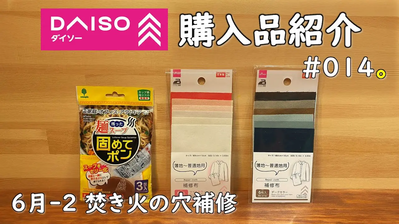 | タイトル | 【ダイソー購入品】キャンプで約立つ、100均購入品のご紹介です。 固めてポン 補修布 アウトドアスパイス daiso camping 焚き火の穴補修 |