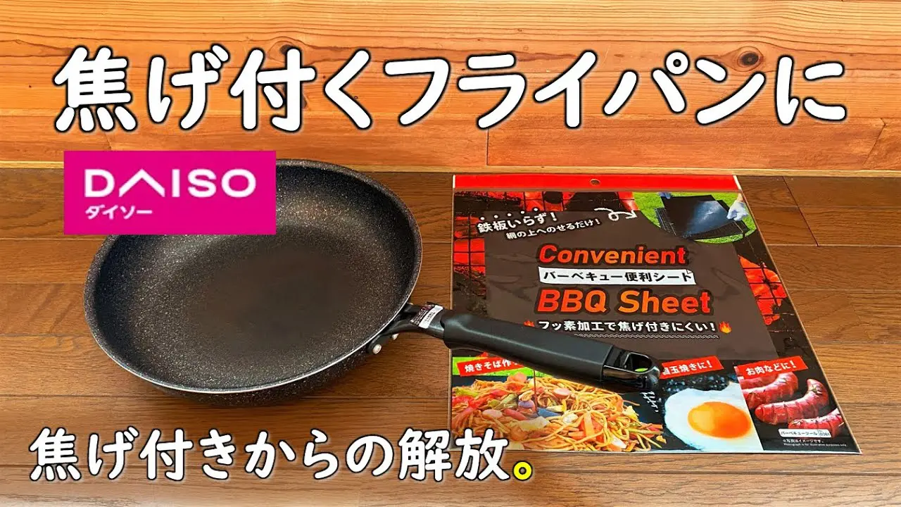 | タイトル | 【フライパン焦げ付かない方法】焦げ付くフライパン復活? ダイソー バーベキュー便利シートを使ったら焦げなく最強だった件。daiso 100均 キャンプ 道具 |