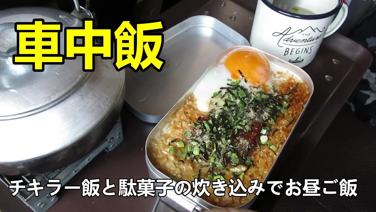 | タイトル | 【車中飯】忙しくて車中泊キャンプに行けないから近所の河原に行きパネルバンの中でチキンラーメンと駄菓子の100均食材でお昼ご飯 |