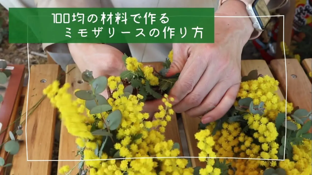 | タイトル | 【ミモザリースの作り方】100均の材料で作るリース |