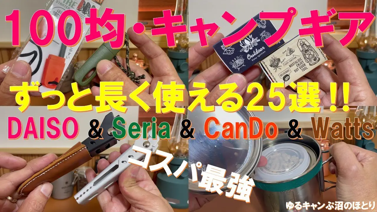 | タイトル | 100均・キャンプギア‼ずっと使える25選‼DAISO & Seria & CanDo & Wattsのアイテムから100均キャンプギアマニアが長く使用しているモノを厳選‼ |