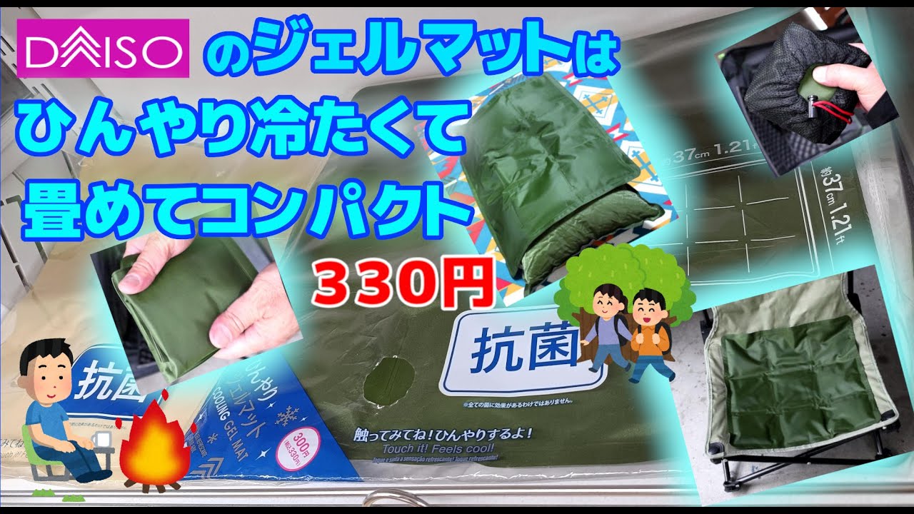 | タイトル | ダイソー新商品ひんやりジェルマット・省エネ保冷・コンパクト収納・熱中症対策・キャンプやアウトドアで大活躍・冷やさなくても冷たい吸水ポリマー・接触冷感素材・100均キャンプ |