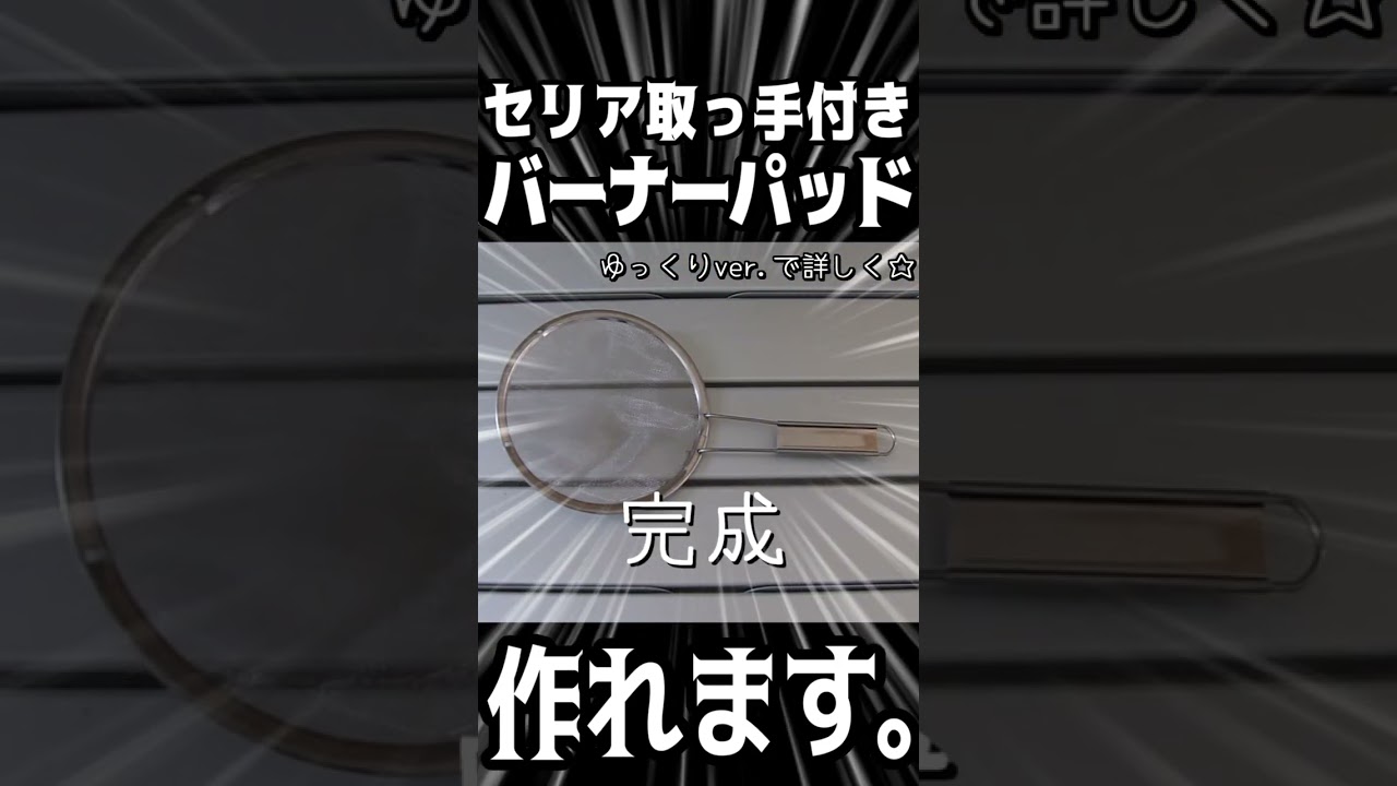 | タイトル | 【セリア】100均☆キャンプ★DIY取っ手付きバーナーパッドの作り方_さわり★ダイソーアウトドアソロキャンプ飯パン焼き肉BBQ料理☆コールマンクッカー自動炊飯#100均#キャンプ#DIY#shorts |
