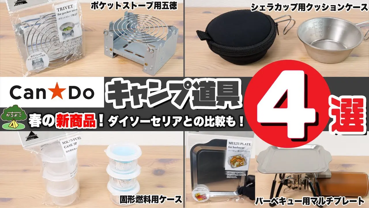 | タイトル | 【100均キャンプ道具】キャンドゥ おすすめキャンプ道具 春の新商品4選【ダイソーセリアとの比較も行う!】 |