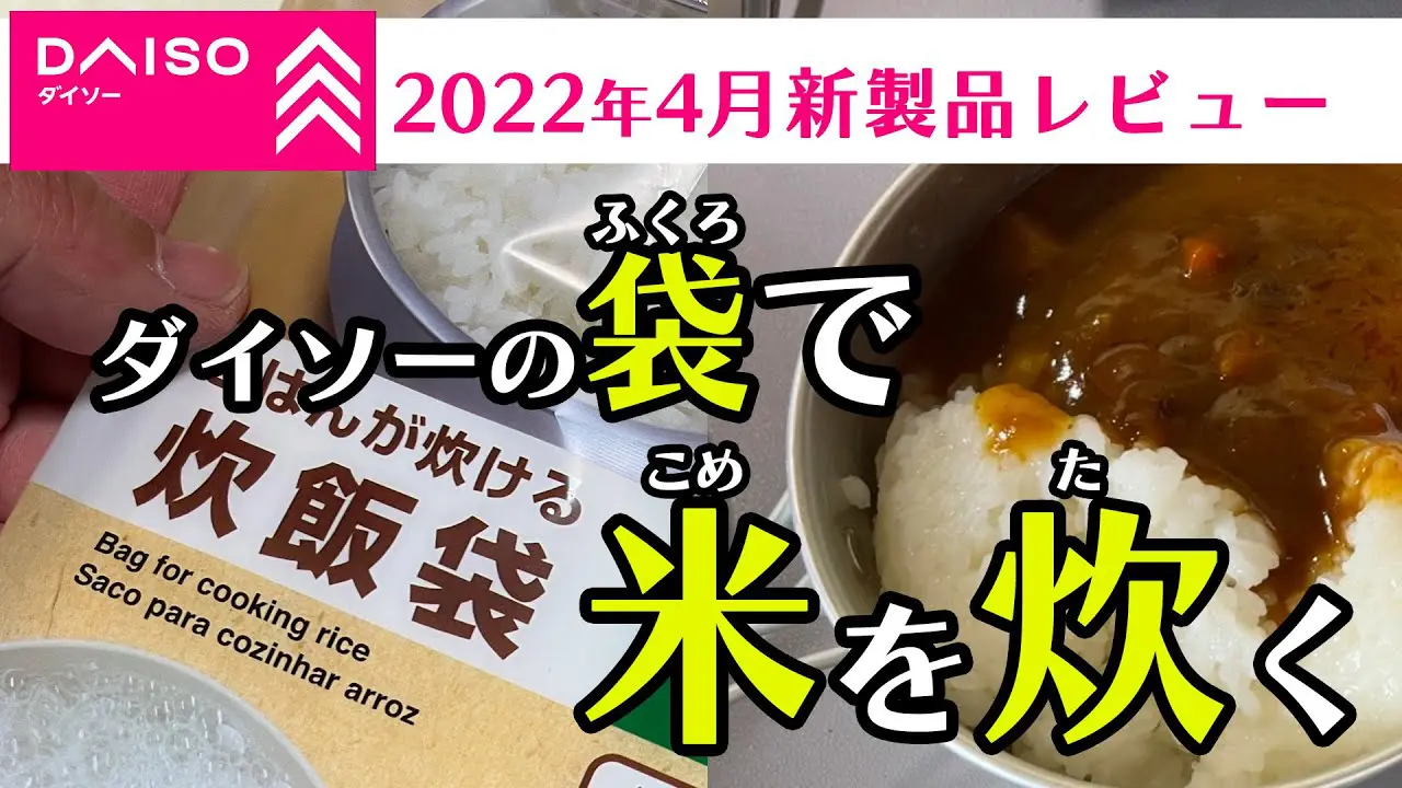 | タイトル | 【100均キャンプ】ダイソー「ごはんが炊ける炊飯袋」はお得!2022春の新製品レビュー ソロキャンプ |