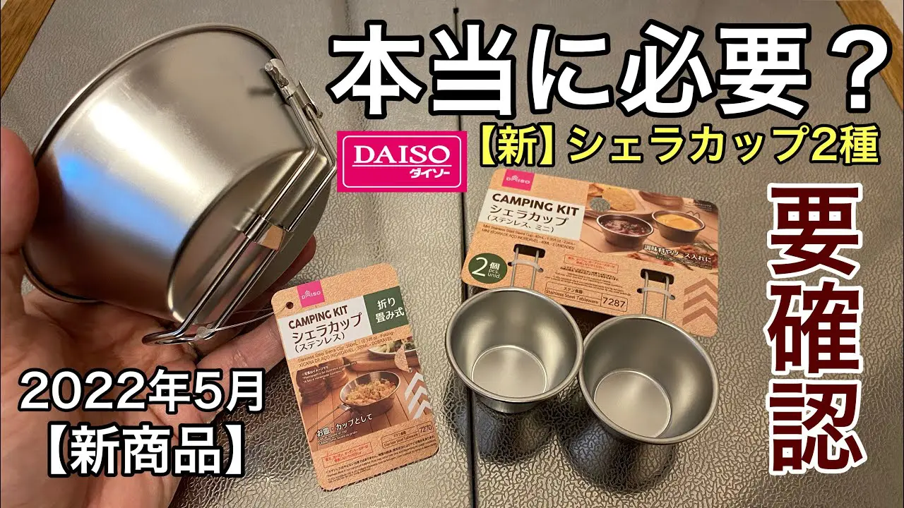 | タイトル | 2022年5月ダイソーキャンプ新商品「折り畳みシェラカップ&ミニシェラカップ」100均キャンプ開封レビュー |