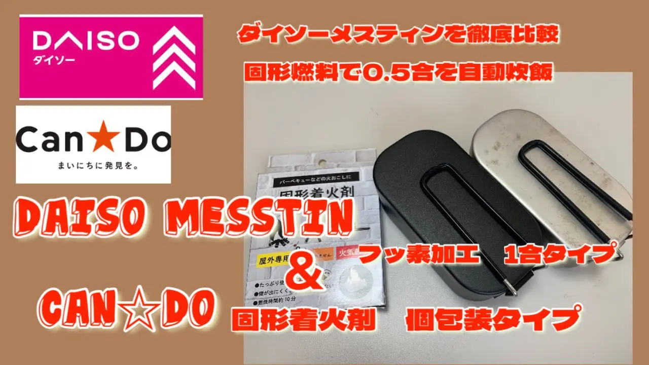 | タイトル | 【100均キャンプギア】ダイソー黒メスティンとレギュラーミニメスティンを徹底比較! キャンドゥのヘキサミン燃料で0.5合自動炊飯!【ダイソー】【キャンドゥ】 |