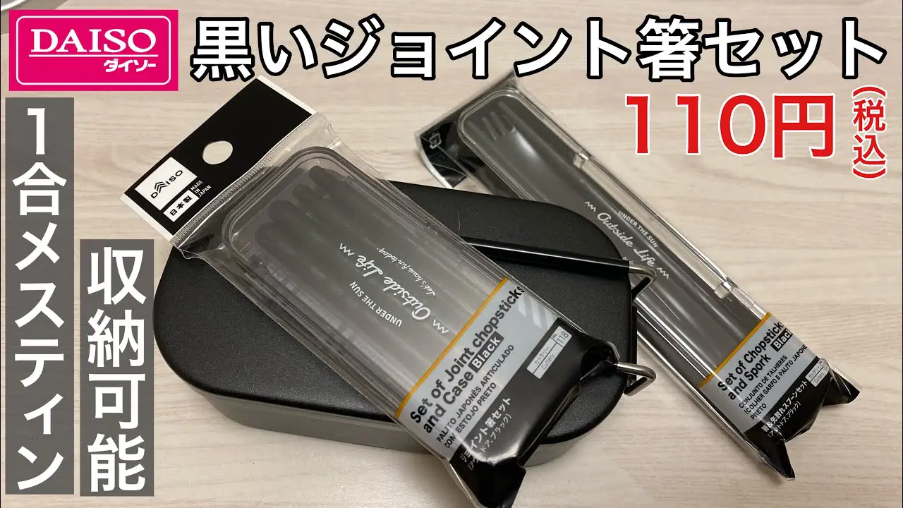 | タイトル | 【ダイソー】ブラックジョイントセパレート箸セット110円(税込)!1合メスティンにスタッキング可能【100均キャンプ用品】 |