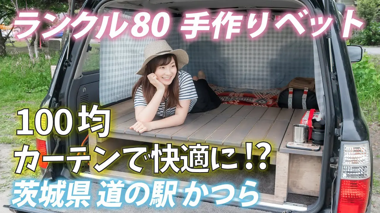 | タイトル | 車中泊仕様のランクル80/100均で目隠しカーテンが出来る?茨城県 道の駅かつら |