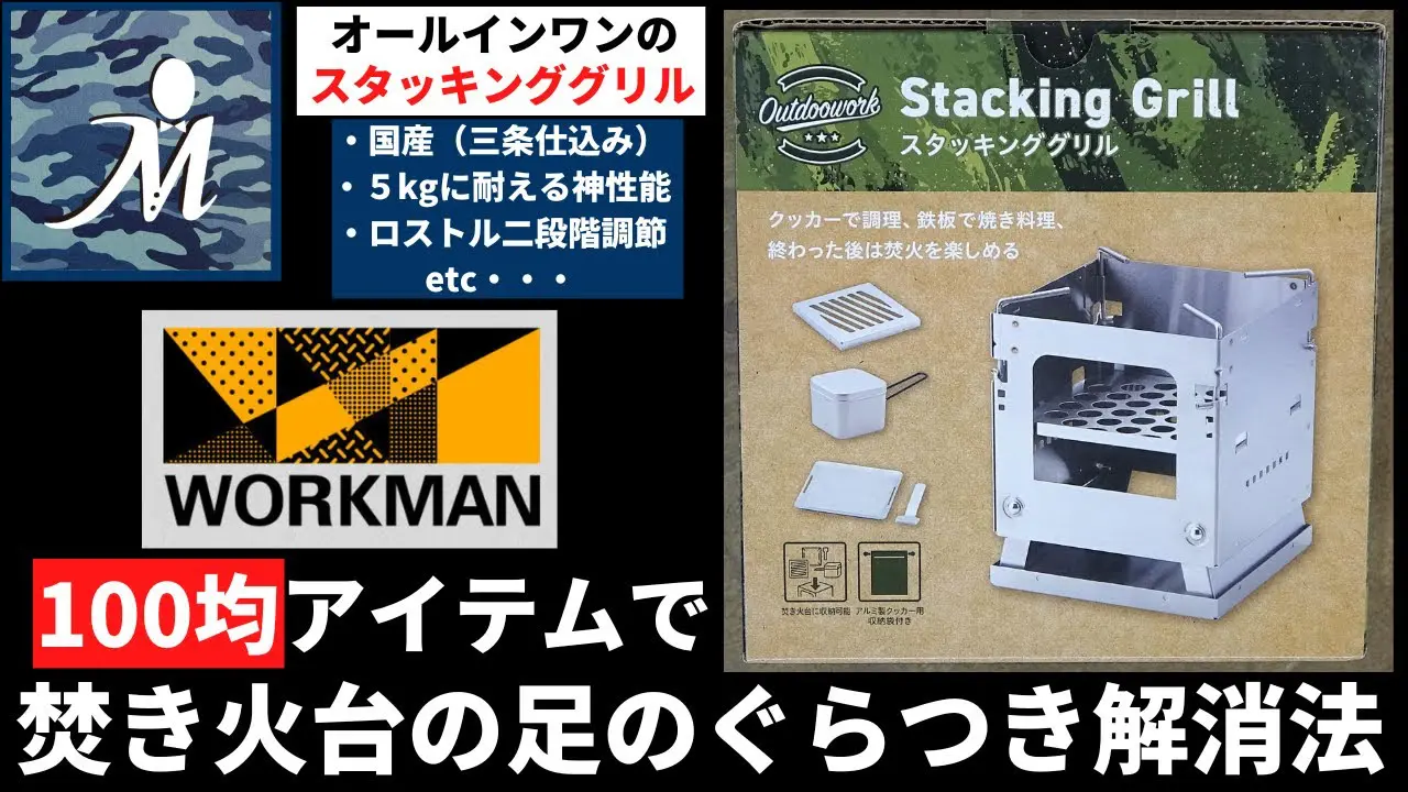 | 説明文 | ワークマンさんから待望のオールインワン収納焚き火グリルセットが新発売。超簡単に焚き火台の足のぐらつきを解消する方法をご紹介します。FUKUさんがデザインされた国産三条仕込みのスタッキンググリルは超機能... |