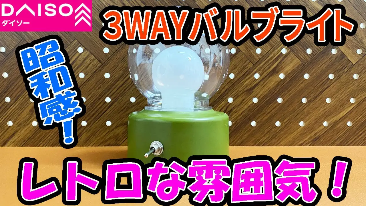 | タイトル | 【ダイソー購入品】レトロな雰囲気に今更やられた!3WAYバルブライトが昭和っぽくてキャンプでも使える!? |