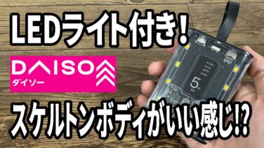 【ダイソー新商品】アウトドアで活躍できそうなスケルトンボディのモバイルバッテリー!LEDライトがいい感じ! – 100円ショップの気になる一品(ヒャッキニ)