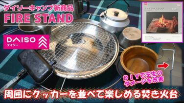100均キャンプ シリーズ最終回|ダイソーキャンプ新商品【ファイアースタンド】爆燃キャンプ!焚き火台の火床改善DIY|工具不要でドーム状の火床を平らにするワザ?!|100均キャンプギア – 猿【Saru】camper