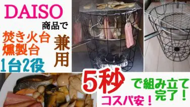 100均キャンプ 手作り燻製BOXで美味しい燻製料理☆!ダイソー【100均キャンプ道具】5秒で組み立て!焚き火台☆燻製台 1台2役 コスパ安! – 咲代屋 出典:YouTube / 咲代屋 2023.03.25 100均キャンプ